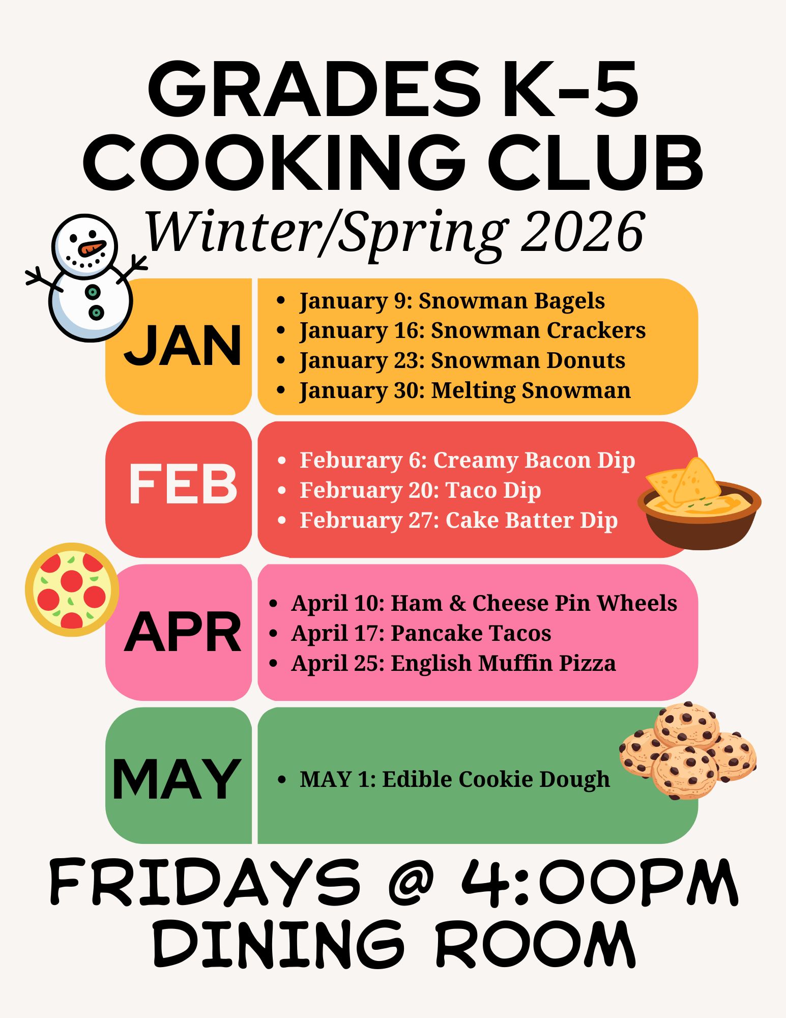Cooking Club Schedule
