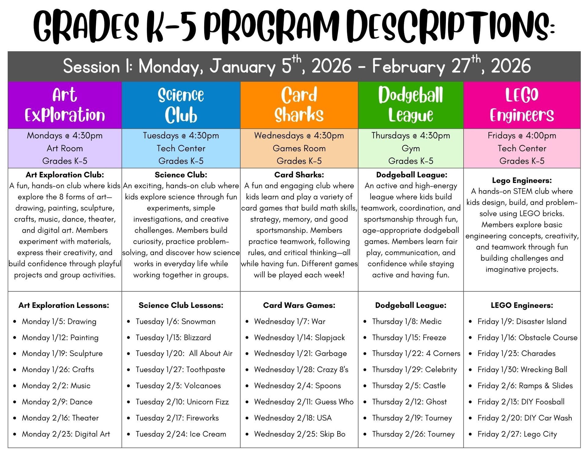 Science Club Schedule