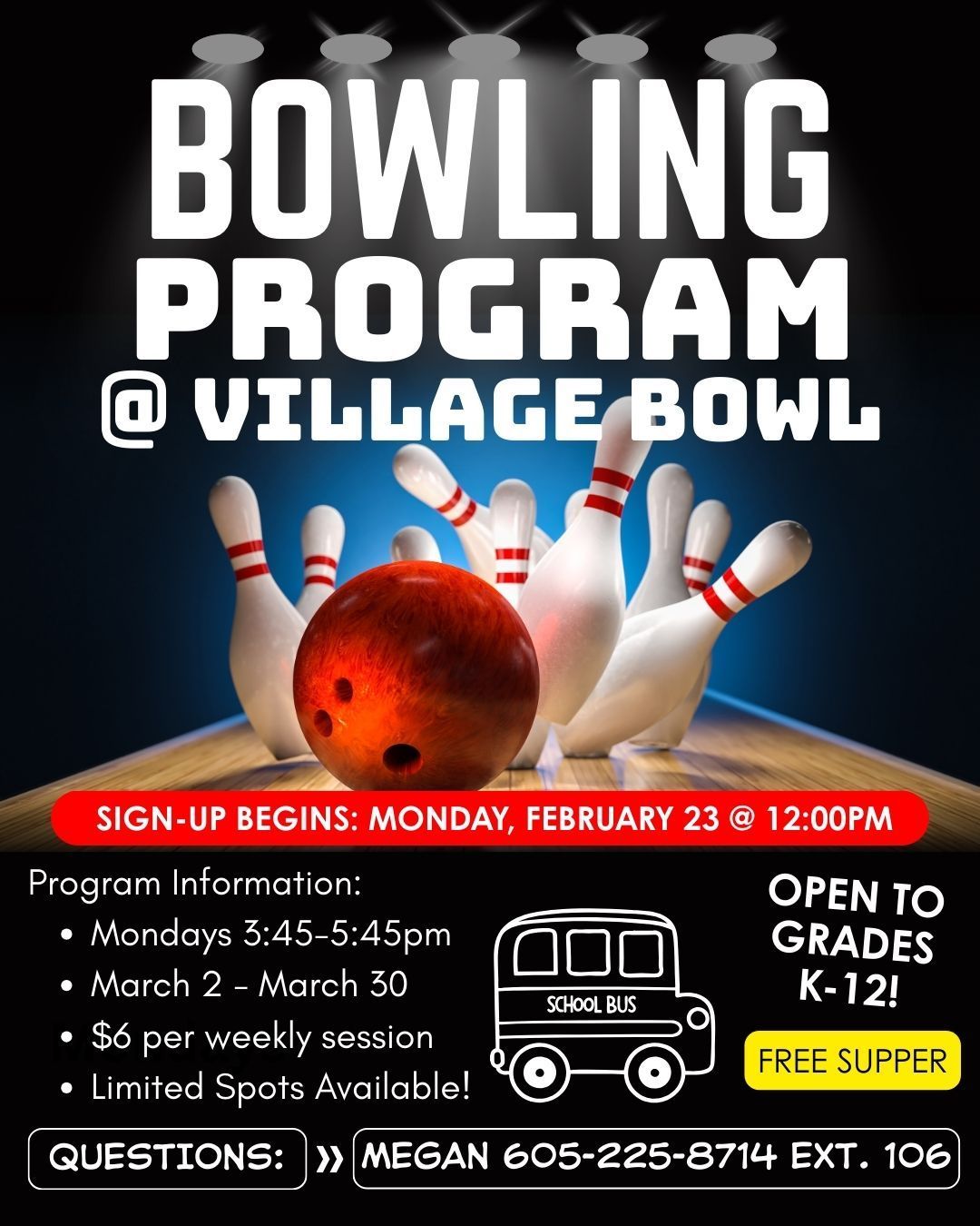Club members are transported by Club staff in Club vans to and from the bowling alley and are supervised by Club staff during the program. The $6 weekly fee includes 2 games and shoe rental.