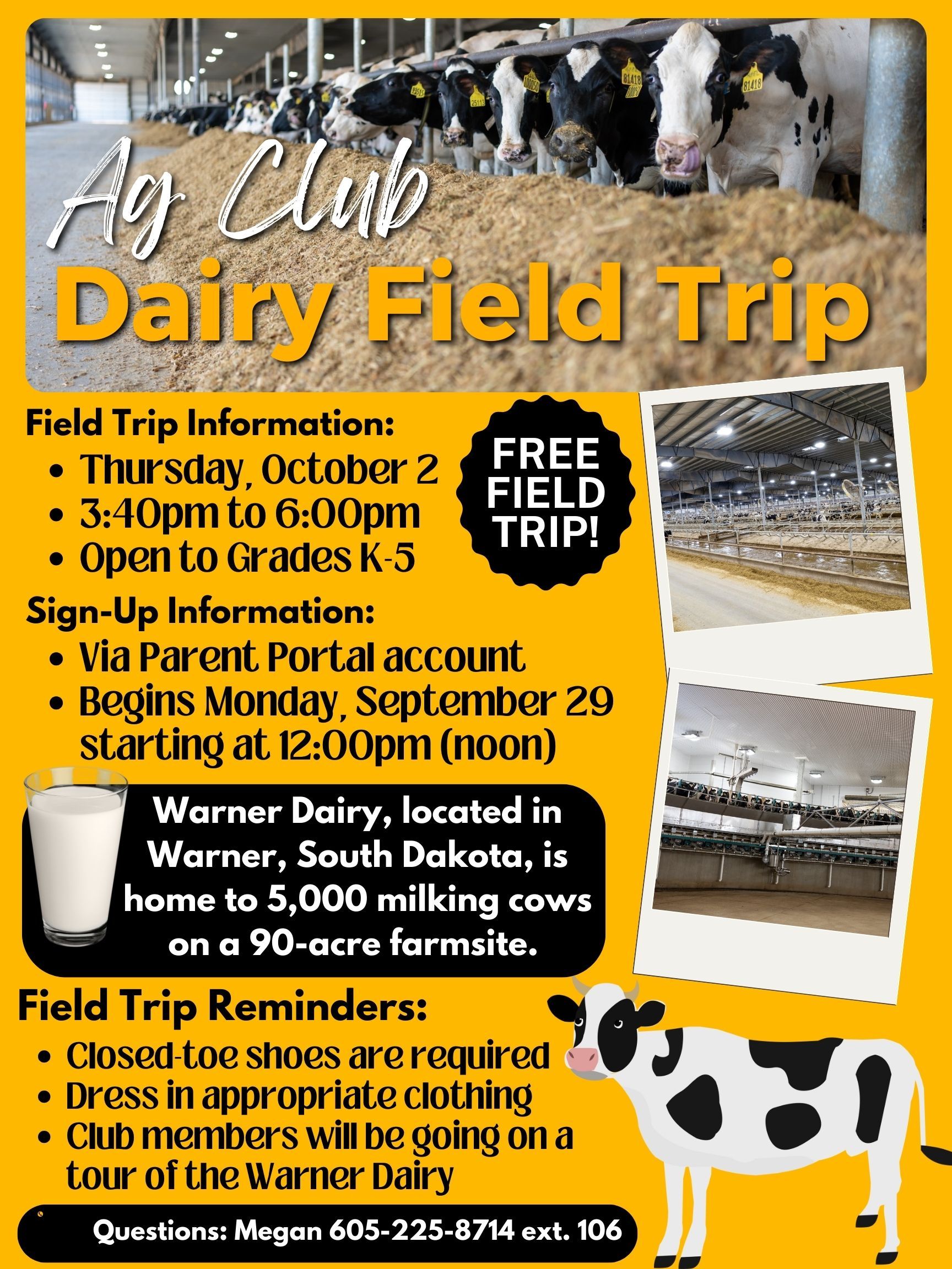 Ag Club Dairy Field Trip! We're excited to offer a FREE field trip to the Warner Dairy