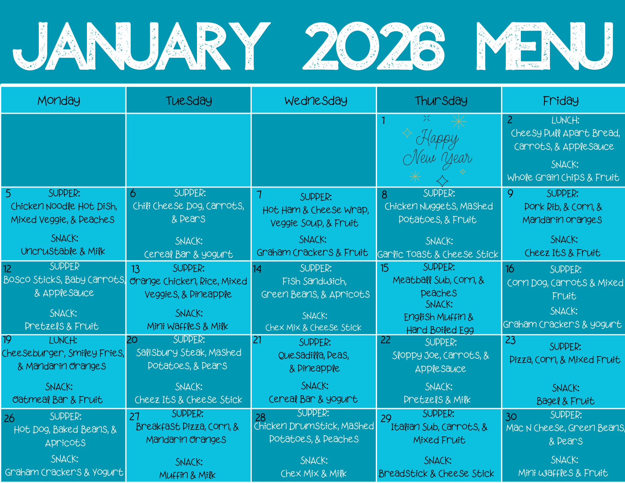 MONTHLY MENUS: